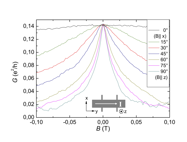 We see below that indeed the conductance of the device is strongly reduced by the application of a magnetic field: